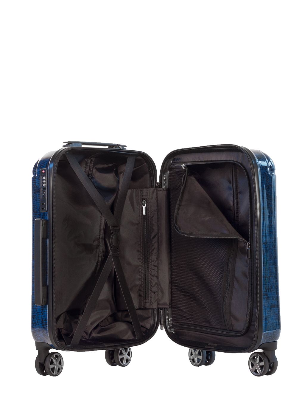 Lightweight cabin suitcase with a strong double-layer zipper for the main compartment, which makes the suitcase even more secure than traditional zippered suitcases. On the side of the suitcase, there is an integrated TSA-approved combination lock, we always recommend that you lock the suitcase with a TSA (Transportation Security Administration) lock. The large, strong and solid double wheels on the suitcase help ensure unmatched maneuverability. The telescopic handle is solid when you move the stand, in addition, it is possible to lock the height of the telescopic handle with three different steps. Strong carrying handles are found both at the top and on the side of the suitcase. The suitcase is made of the strong Polycarbonate (PC) material, which is far stronger than ABS, PVC or PP, which are typically used for other suitcases in this price range. The suitcase is available in 2 colors, dark blue or gray, both colors have a woven structure which gives the suitcase a unique and stylish look. The cabin suitcase is approved as hand luggage for most airlines, however, we always recommend that you check the dimensions for the airline in question before traveling.