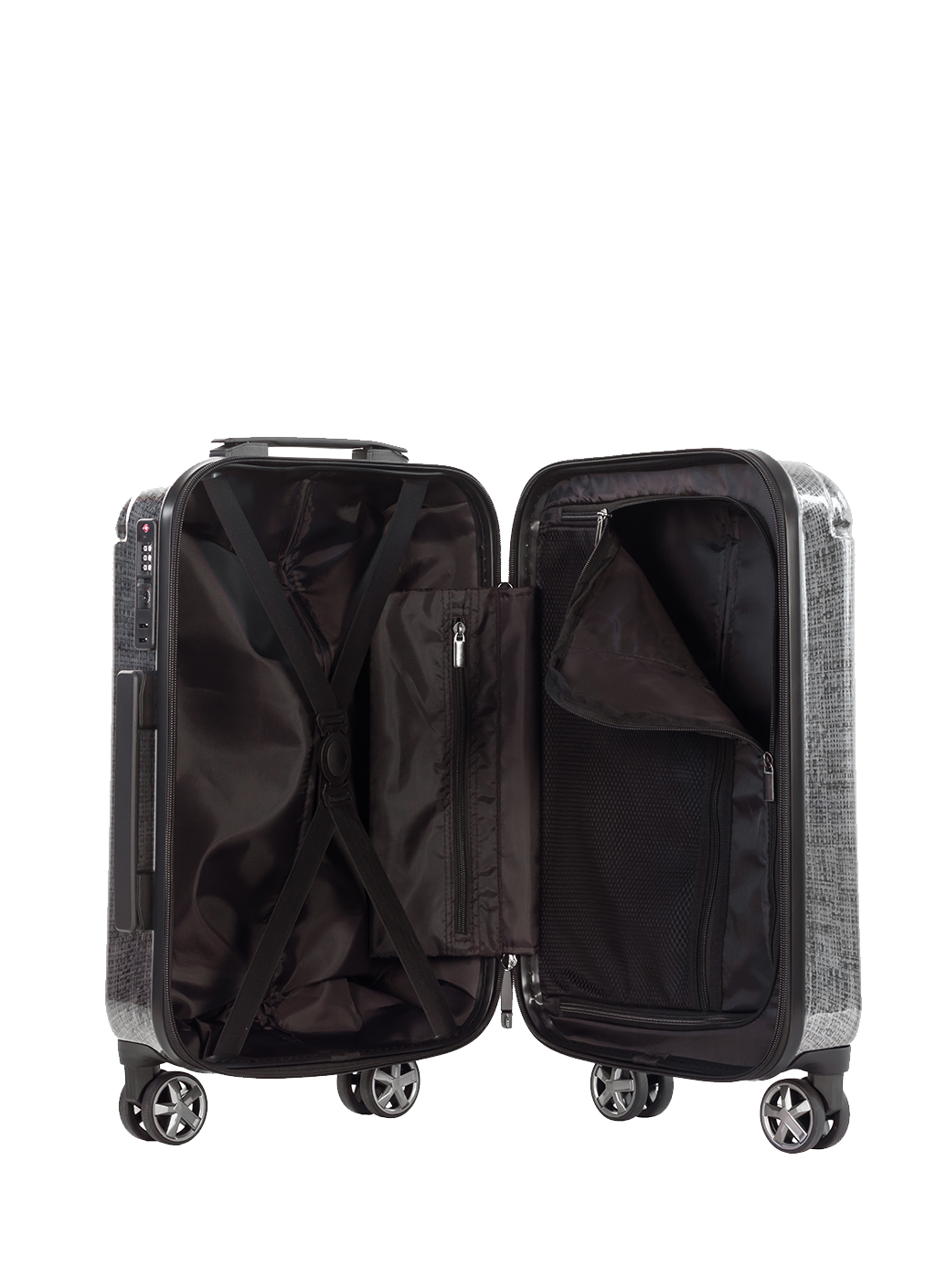 Lightweight cabin suitcase with a strong double-layer zipper for the main compartment, which makes the suitcase even more secure than traditional zippered suitcases. On the side of the suitcase, there is an integrated TSA-approved combination lock, we always recommend that you lock the suitcase with a TSA (Transportation Security Administration) lock. The large, strong and solid double wheels on the suitcase help ensure unmatched maneuverability. The telescopic handle is solid when you move the stand, in addition, it is possible to lock the height of the telescopic handle with three different steps. Strong carrying handles are found both at the top and on the side of the suitcase. The suitcase is made of the strong Polycarbonate (PC) material, which is far stronger than ABS, PVC or PP, which are typically used for other suitcases in this price range. The suitcase is available in 2 colors, dark blue or gray, both colors have a woven structure which gives the suitcase a unique and stylish look. The cabin suitcase is approved as hand luggage for most airlines, however, we always recommend that you check the dimensions for the airline in question before traveling.