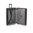 Ball bearing, smooth-rolling wheels in the style of Porsche Taycan rims and a multi-step, ergonomic handle provide for the perfect performance. Through the rounded edges of the handle, bags can be easily attached and removed. The divided interior is also flexible - and can be expanded at any time. An ultra-secure two-way zipper and a TSA lock protect your luggage.