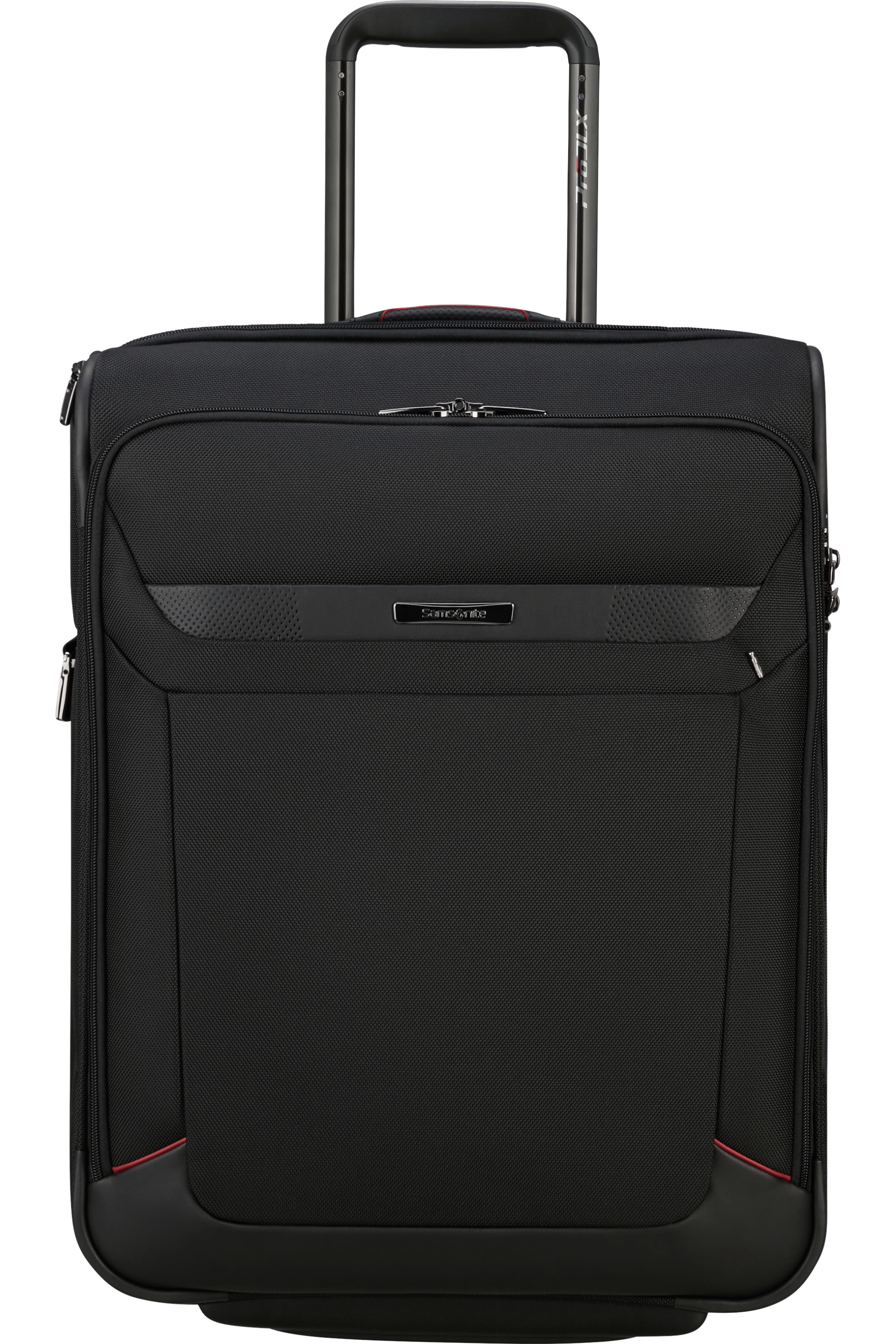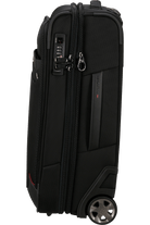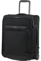 Samsonite PRO-DLX 6 Upright 55 EXP, kabine kuffert på 2 hjul til førende forretningsrejsende. Kufferten er i slidstærkt Recyclex materiale. Med plads til 15,6" laptop (39,6 cm diameter). Samt lomme til tablet/ipad op til 10,5" (26,7 cm diameter). Kabine kufferten har en medfølgende dragtpose til et jakkesæt. Rejsegarderoben kan sættes fast inde i kufferten. Dragtposen kan tages helt ud og hjælper med at holde dit tøj rynkefrit. Kufferten er vandafvisende og kan låses via det godkendte TSA låsesystem. Der er indbygget en kraftig stålwire i frontlommen, som kan trækkes igennem alle lynlåsene og indsættes i kodelåsen. Det giver dig mulighed for at låse alle frontlommerne uden besvær. Stålwiren kan også gemmes af vejen. Kabine kufferten er er god i alt slags vejr og godkendt som kabine størrelse hos 99% af flyselskaberne. Vi anbefaler dog altid at man tjekker målene på kabinestørrelsen til det pågældende flyselskab man skal rejse med, da kabine størrelsen kan variere afhængigt af flybilletten.