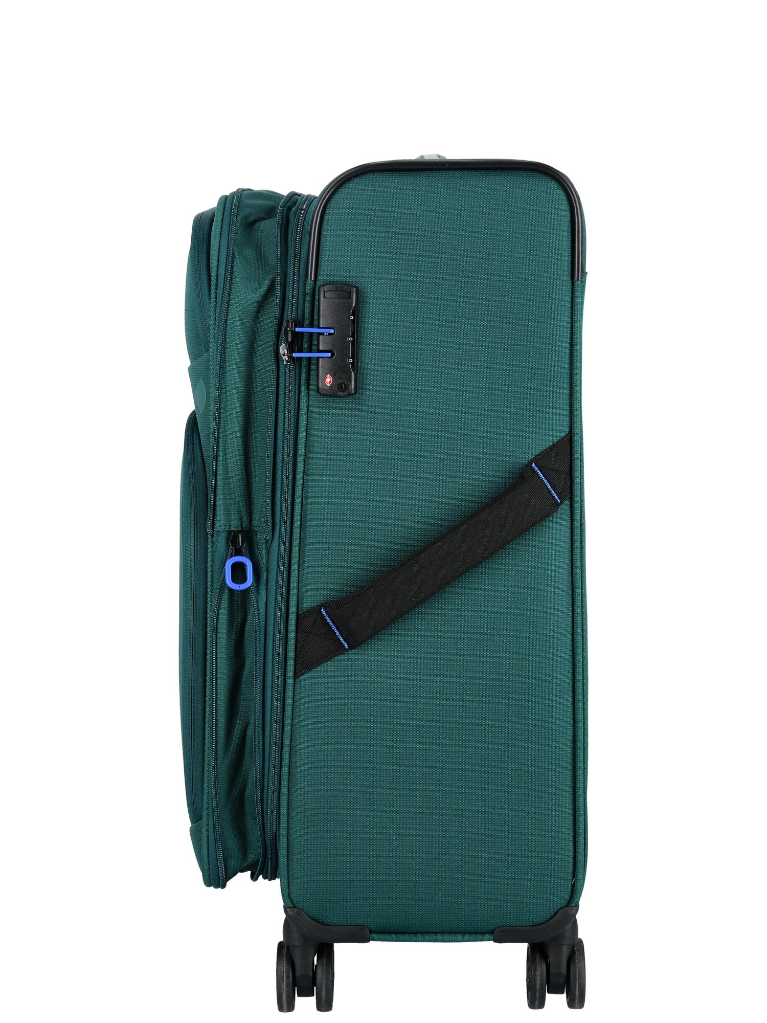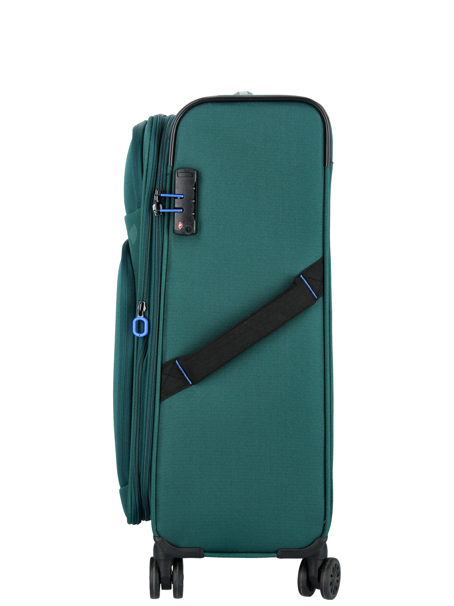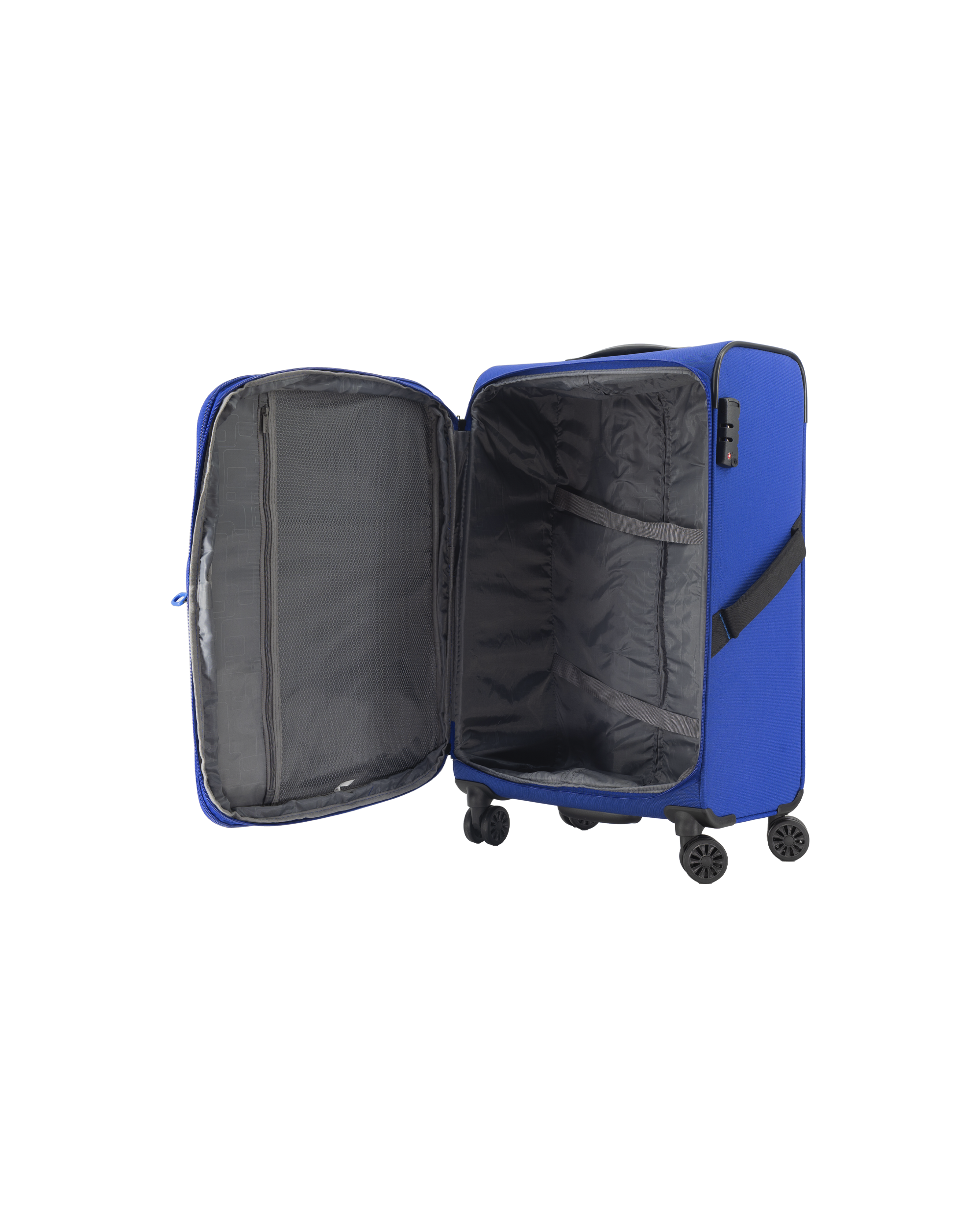 De farvede lynlåse med blå detaljer, giver den et sofistikeret og genkendeligt look. Kufferterne er udstyret med fire multihjul, hvilket giver en glidende og ubesværet bevægelse i alle retninger. Teleskophåndtaget har fire højdeniveauer med to kraftige teleskopstænger, som giver komfortabel håndtering, og den godkendte TSA-kodelås sikrer dine ejendele.
